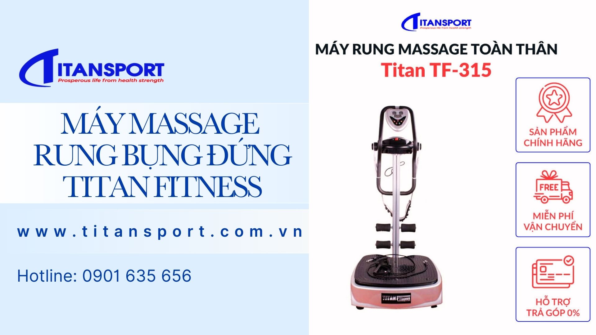 Đừng chờ đến khi mỡ bụng trở thành nỗi lo thường trực. Hãy chủ động đầu tư cho sức khỏe và hình thể ngay hôm nay với máy massage rung bụng đứng chính hãng tại Titansport. Tại đây, bạn không chỉ mua một thiết bị, mà đang lựa chọn sự an tâm, hiệu quả lâu dài và dịch vụ đồng hành tận tâm.