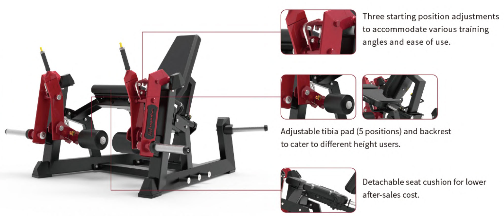 - Chức năng chính: Tập cơ đùi trước (quadriceps)